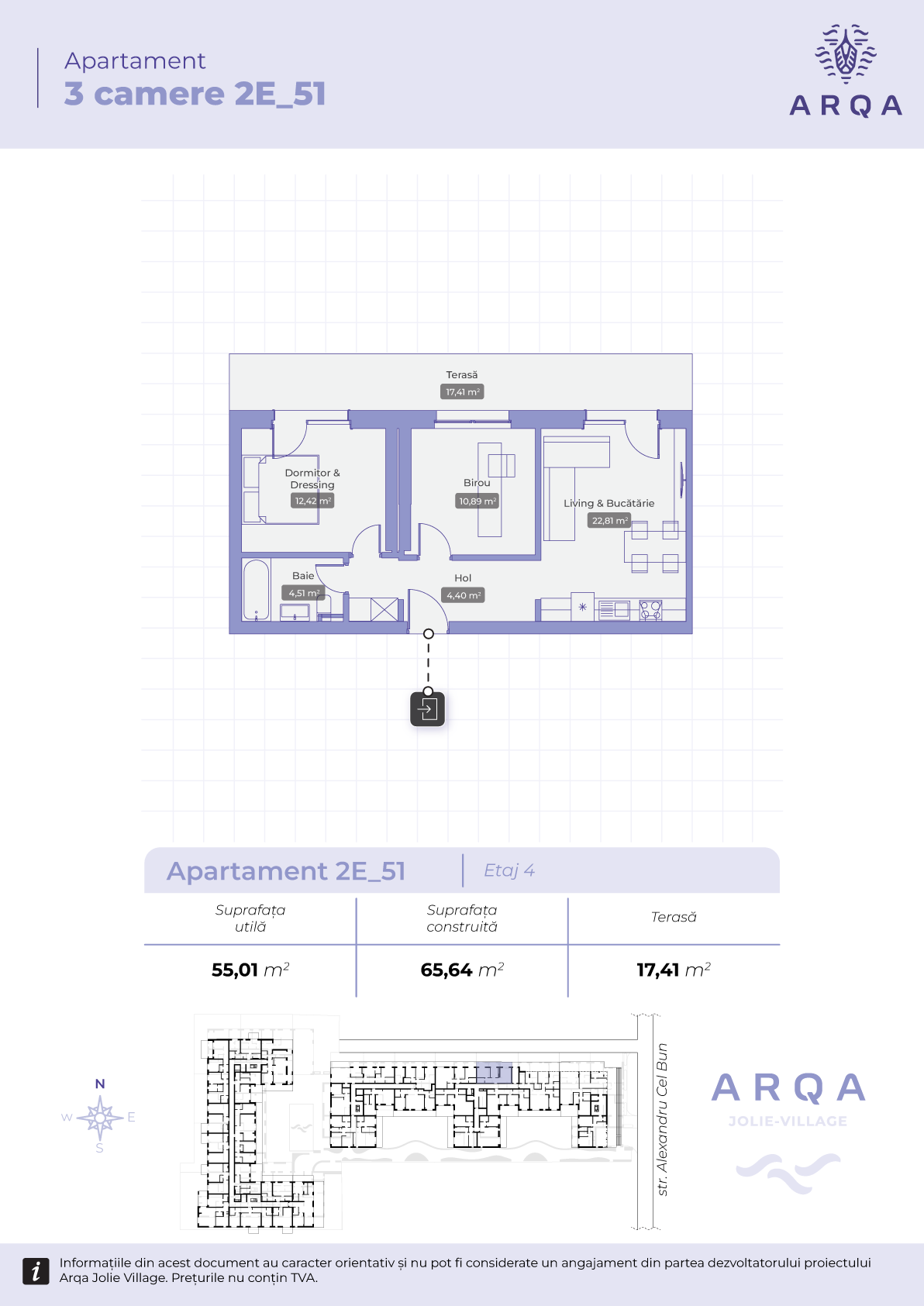 - Suprafață utilă: 55,01 mp