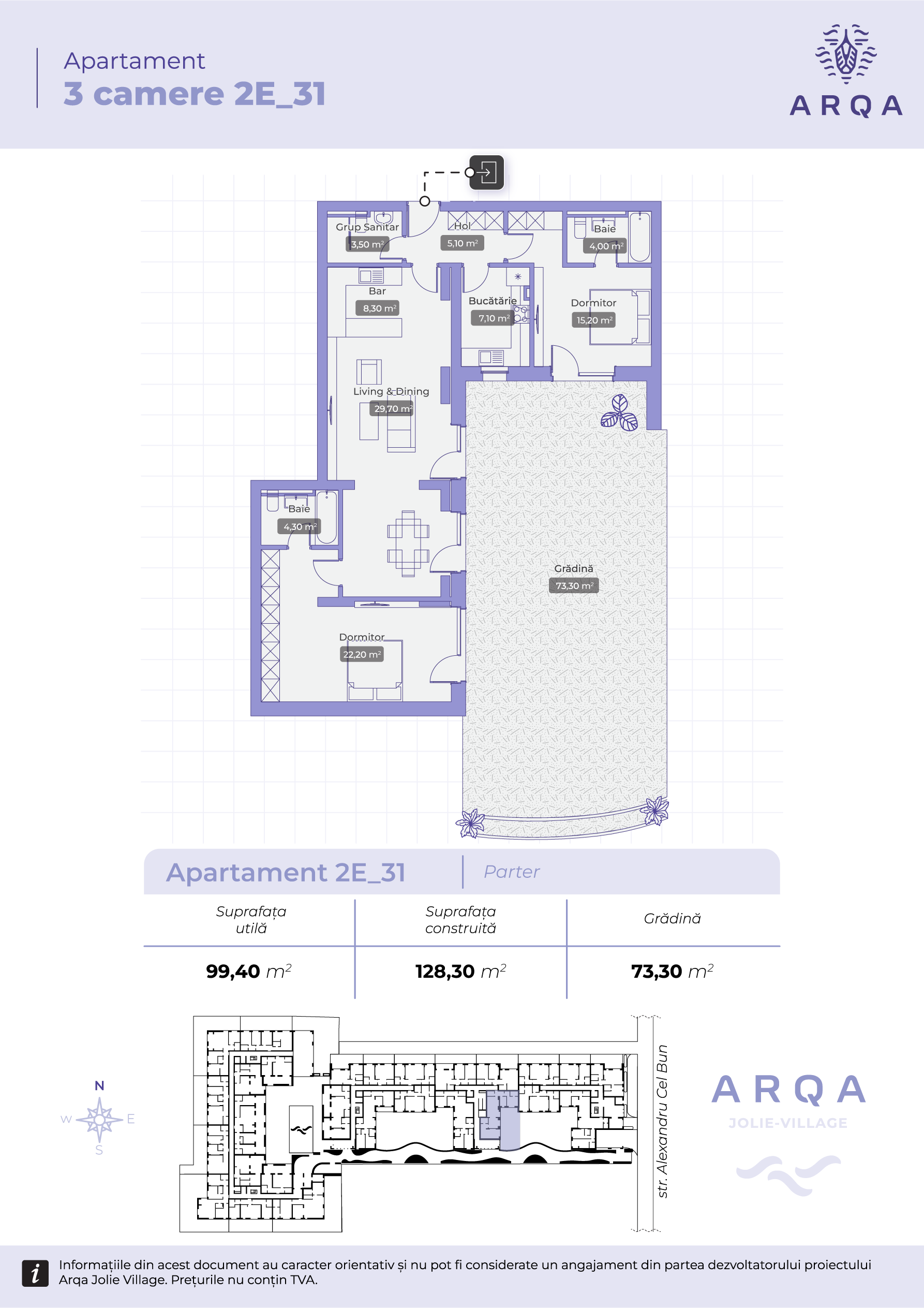 - Grădină: 73,30 mp