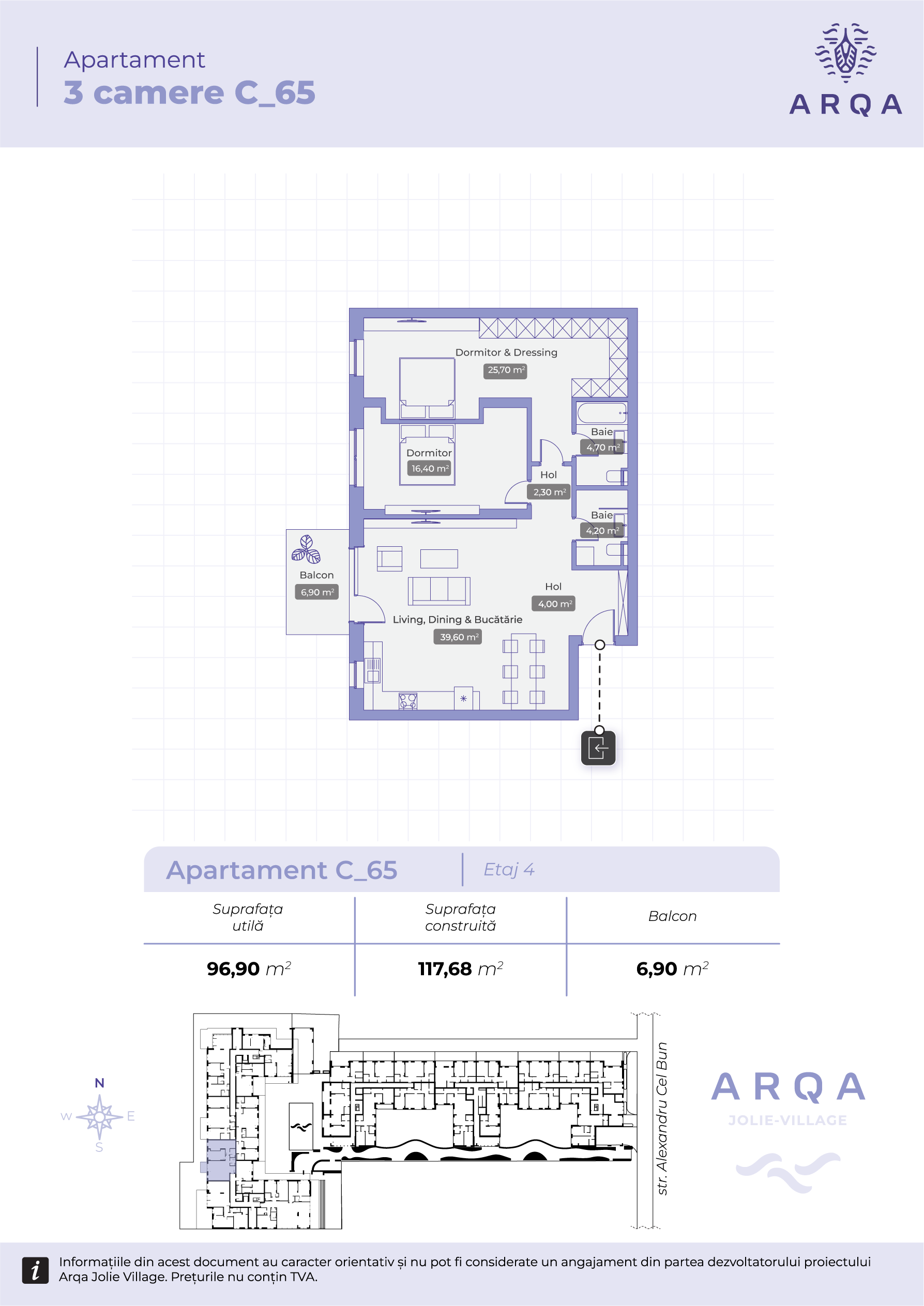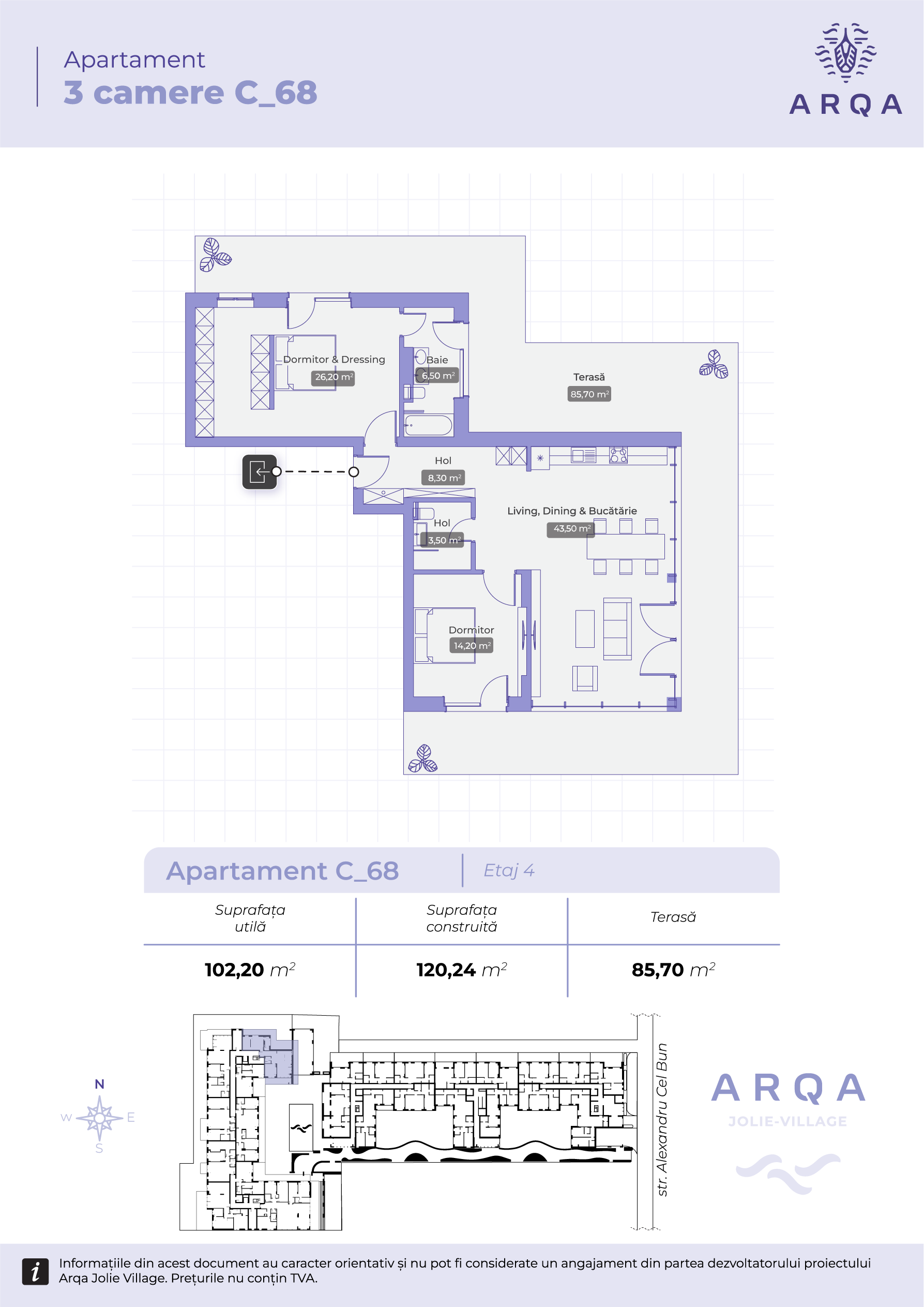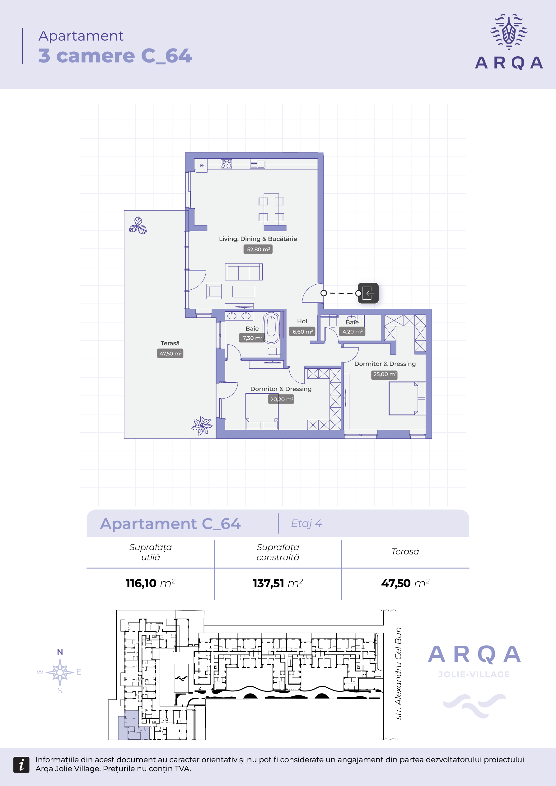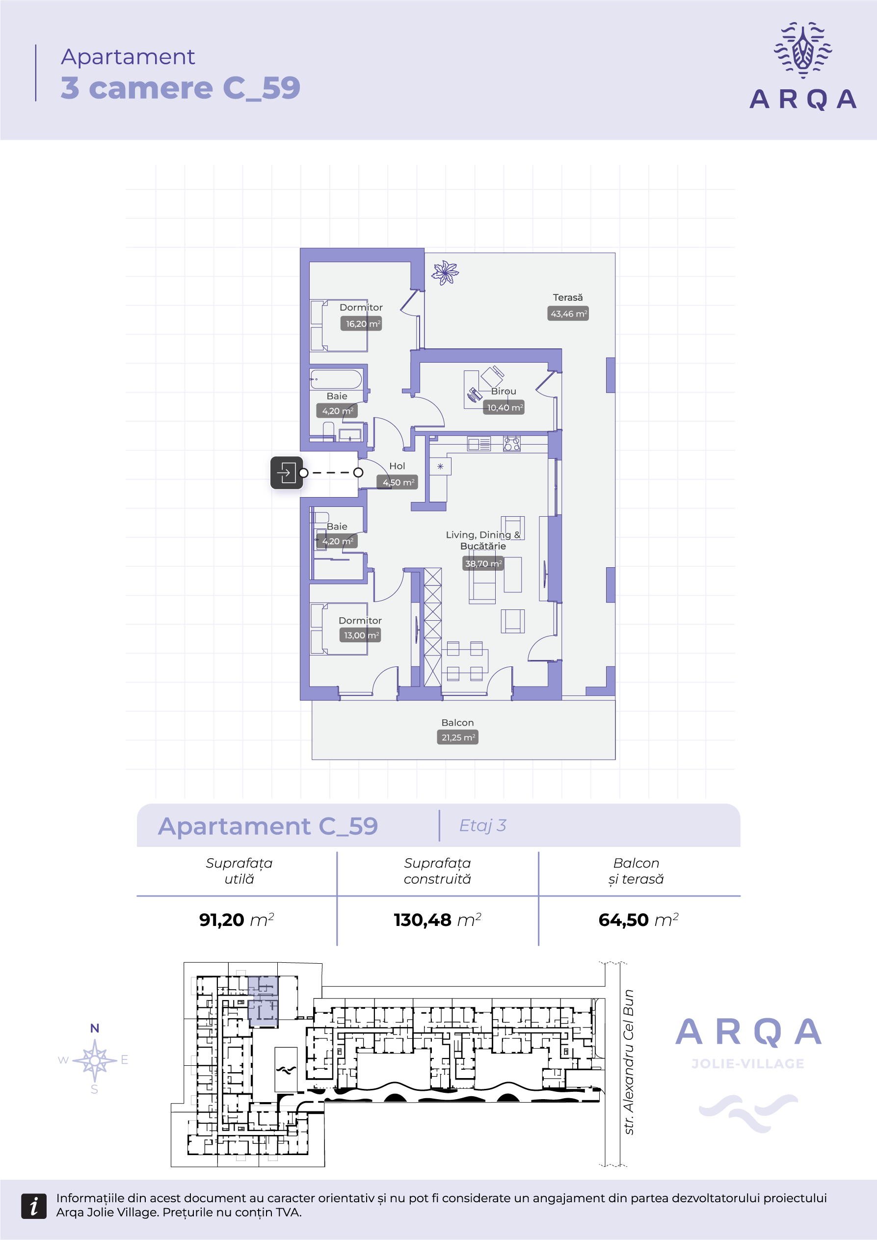 - Balcon & terasă: 64,50 mp